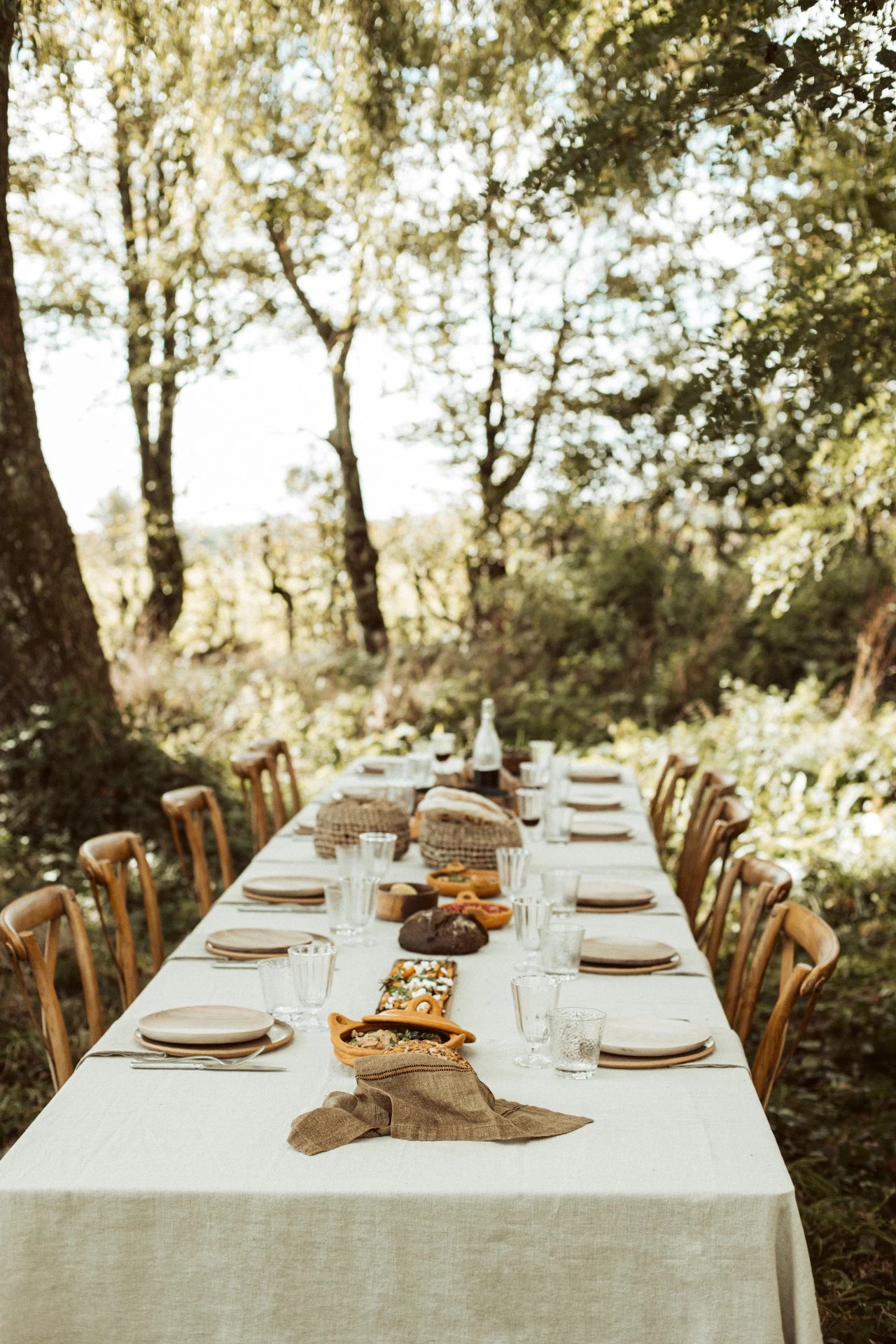 Laat je betoveren door de magische sfeer van Marrakesh op je eettafel. We werken met warme aardse tinten, natuurlijke texturen en het ambachtelijke houtwerk van deze stad. Op het naturel linnen tafelkleed komen de keramische borden van Claire Horsten helemaal tot hun recht. Aan deze tafel proef je de gastvrijheid, en de warmte die Marrakesh te bieden heeft. Vul de tafel met tajines, couscous in de mooiste houten kommen, en ontvang jullie gasten voor een gezellig avondfeest.